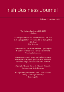 Since its inception in 2005, the Irish Business Journal has endeavoured to provide authors with a forum for presenting research across a broad spectrum. The journal aims to present readers with a diverse and interesting collection of papers, and welcomes papers from both academics and practitioners. This journal is an Irish publication, homed in Munster Technological University, however in addition to presenting papers that are of interest to the Irish academic and business sector, it also aims to present papers that have global interest and reach. All papers are double blind peer-reviewed, with an average turn around time of 2-4 months.
